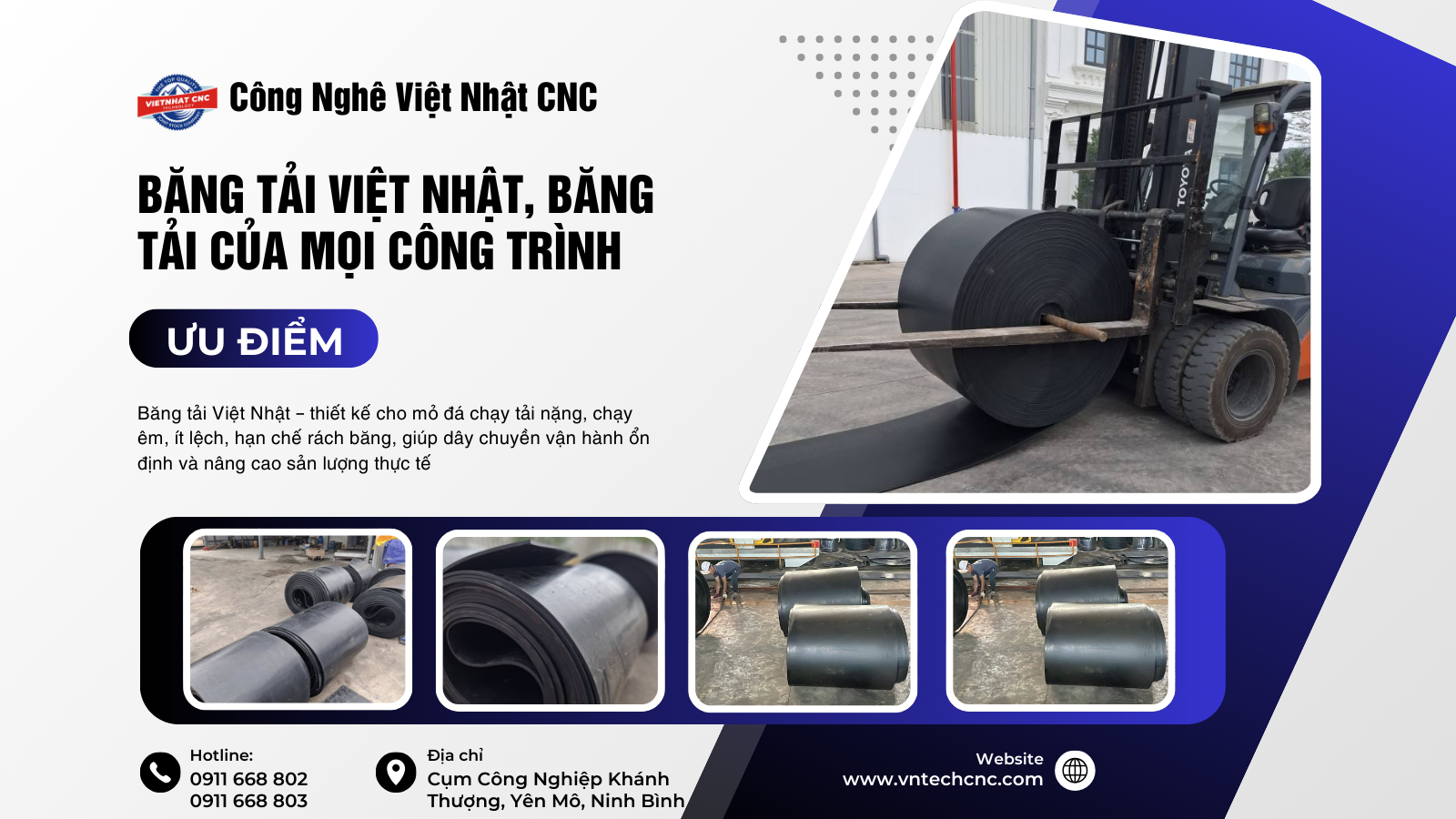 👉 Băng tải Việt Nhật CNC – băng tải của mọi công trình, lựa chọn tối ưu cho dây chuyền nghiền đá, nghiền cát vận hành êm, bền, hiệu quả