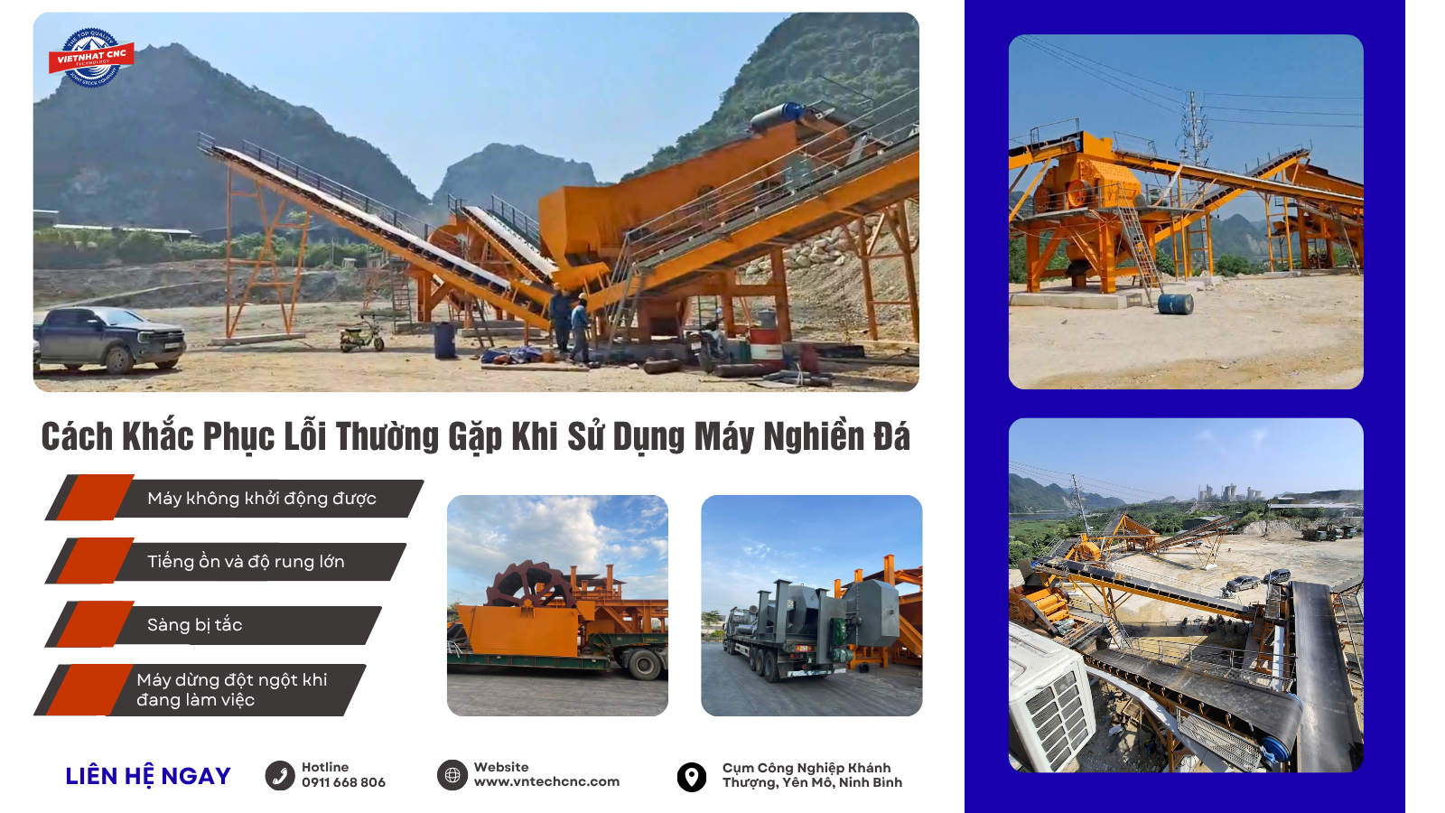 Máy nghiền đá là thiết bị quan trọng trong các ngành xây dựng và khai thác mỏ. Tuy nhiên, trong quá trình vận hành, máy có thể gặp phải một số lỗi phổ biến, ảnh hưởng đến hiệu suất công việc và tuổi thọ của thiết bị. Công Nghệ Việt Nhật CNC xin chia sẻ những cách khắc phục các sự cố thường gặp, giúp tối ưu hóa hiệu quả làm việc và tiết kiệm chi phí sửa chữa.