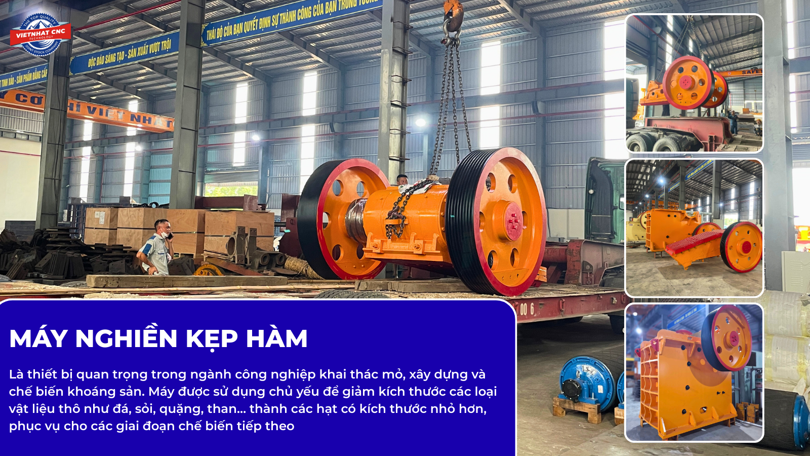 Công nghệ Việt Nhật CNC là đối tác đáng tin cậy hàng đầu trong ngành công nghiệp chế tạo tại Việt Nam. Chúng tôi tự hào là đơn vị uy tín hàng đầu trong sản xuất máy nghiền đá, mang đến những giải pháp tối ưu và giá trị lâu dài cho doanh nghiệp. Với nỗ lực không ngừng, chúng tôi luôn tận dụng tiến bộ khoa học để tạo ra sản phẩm chất lượng vượt trội.