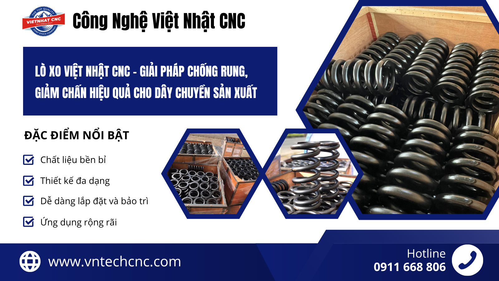 • Giải Pháp Sáng Tạo: Lò xo của Công Nghệ Việt Nhật CNC là giải pháp hiệu quả giúp doanh nghiệp giảm thiểu rung lắc, bảo vệ máy móc và nâng cao tuổi thọ của thiết bị.