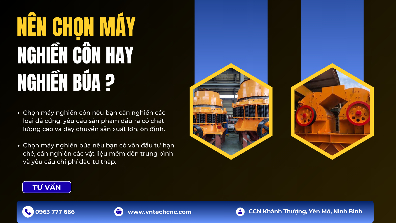 Nếu bạn đang phân vân không biết nên chọn máy nghiền côn hay máy nghiền búa, hãy liên hệ với Công Nghệ Việt Nhật CNC ngay hôm nay để được tư vấn chi tiết về các loại máy nghiền phù hợp với nhu cầu sản xuất của doanh nghiệp bạn.