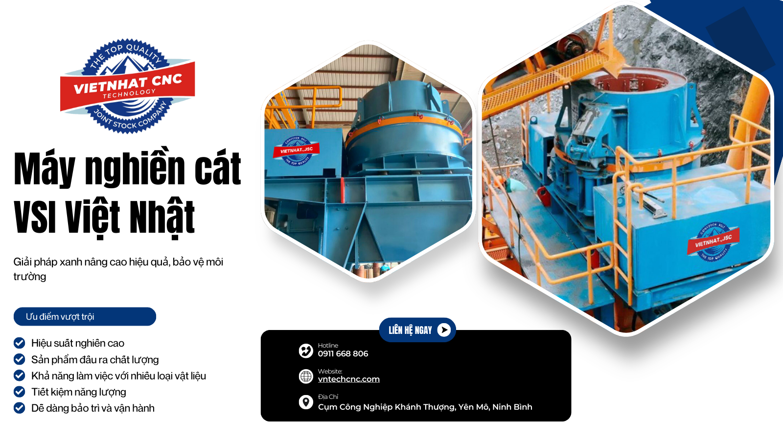 Bạn đang tìm kiếm một giải pháp hiệu quả để sản xuất cát nhân tạo chất lượng cao, đồng thời tối ưu hóa chi phí và bảo vệ môi trường? Máy nghiền cát VSI Việt Nhật chính là lựa chọn hàng đầu. Với công nghệ hiện đại và thiết kế tối ưu, sản phẩm của chúng tôi mang đến hiệu suất vượt trội, đáp ứng mọi yêu cầu khắt khe của các công trình xây dựng.