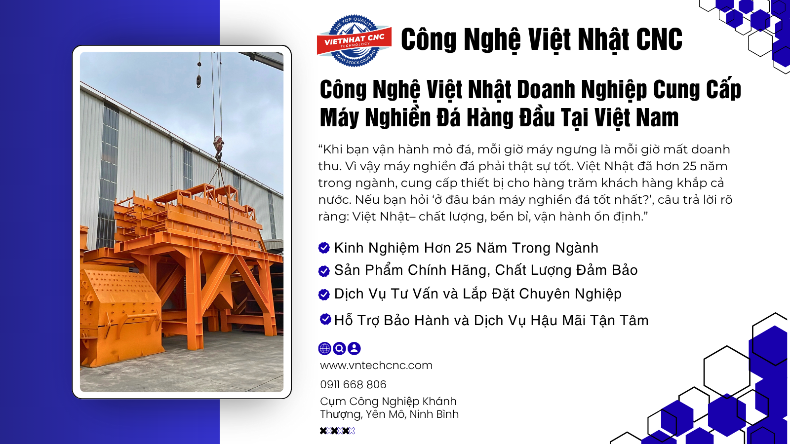 Hãy đến với Công Nghệ Việt Nhật CNC để nhận báo giá chi tiết và tư vấn các giải pháp máy nghiền đá phù hợp cho doanh nghiệp của bạn.