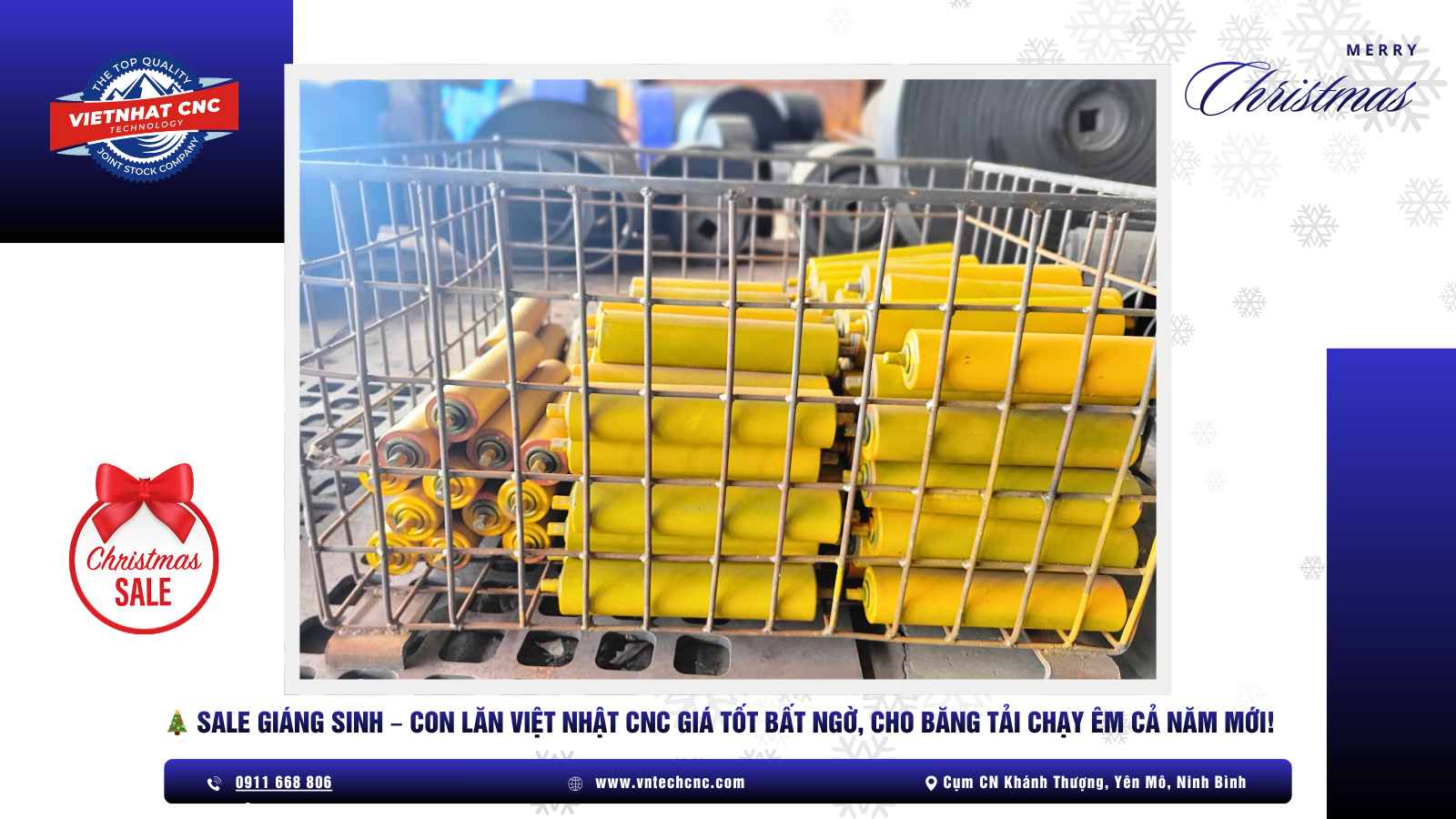 Dịp Giáng Sinh, Việt Nhật CNC áp dụng chính sách giá tốt, hỗ trợ kiểm tra – tư vấn con lăn tận mỏ (theo khu vực). Giúp bạn tính đúng số lượng cần thay, lên kế hoạch bảo dưỡng/bố trí hàng dự phòng hợp lý.